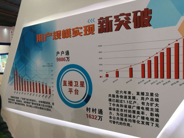 直播衛(wèi)星的用戶突破,有力擴大了中央和省級廣播電視主流媒體在農(nóng)村的覆蓋率、影響力,為促進城鄉(xiāng)廣播電視基本公共服務均等化發(fā)揮了無可替代的作用。